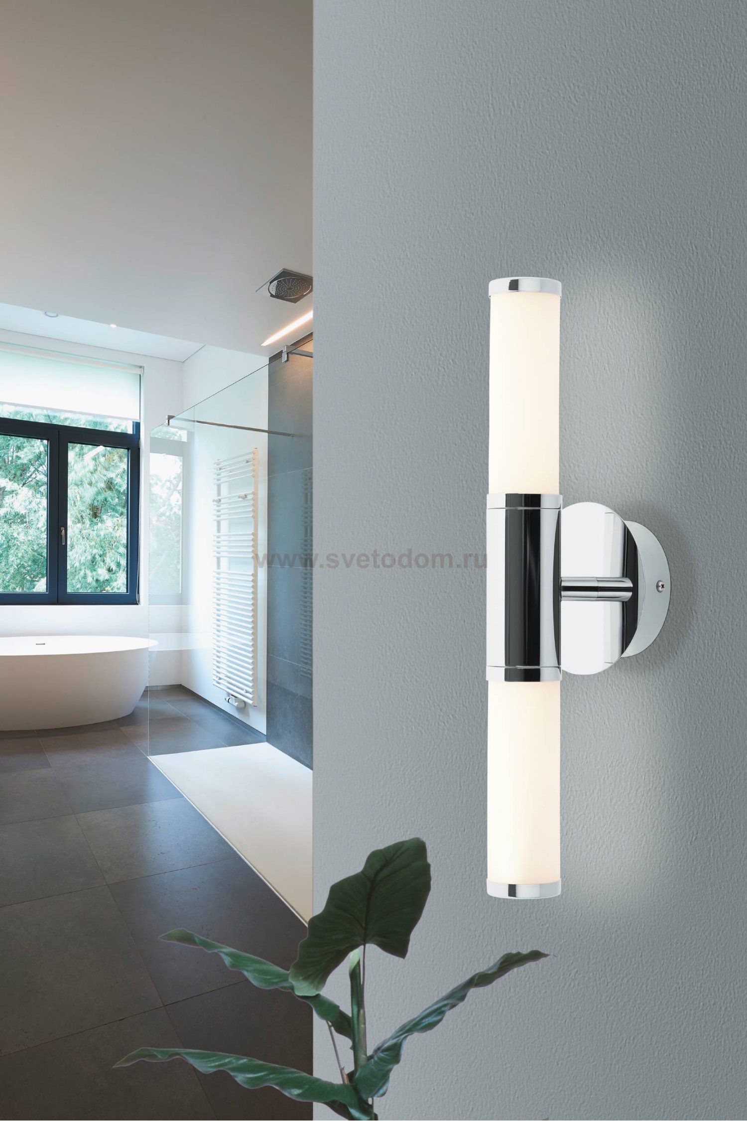 Светодиодное бра PALMERA 1, 2x4,5W (LED), L435, H125, IP44, сталь, хром/опаловое стекло применяется преимущественно в домашнем освещении с использованием стандартных выключателей и переключателей для сетей 220V.