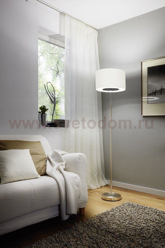Светодиодный торшер ROMAO 1 с сенсор. диммером, 24W (LED), ?380, H1615, сталь, никель мат., хром/текстиль, белый применяется преимущественно в домашнем освещении с использованием стандартных выключателей и переключателей для сетей 220V.