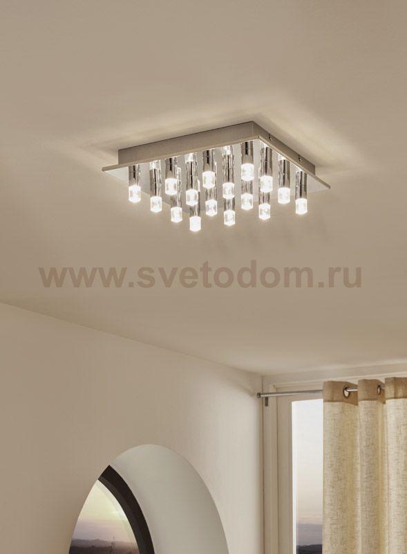 Светодиодный потолочный светильник TEOCELO, 16х1,1W(LED), 370x370, сталь, хром/ пластик, прозрачный, нейтр. свет применяется преимущественно в домашнем освещении с использованием стандартных выключателей и переключателей для сетей 220V.