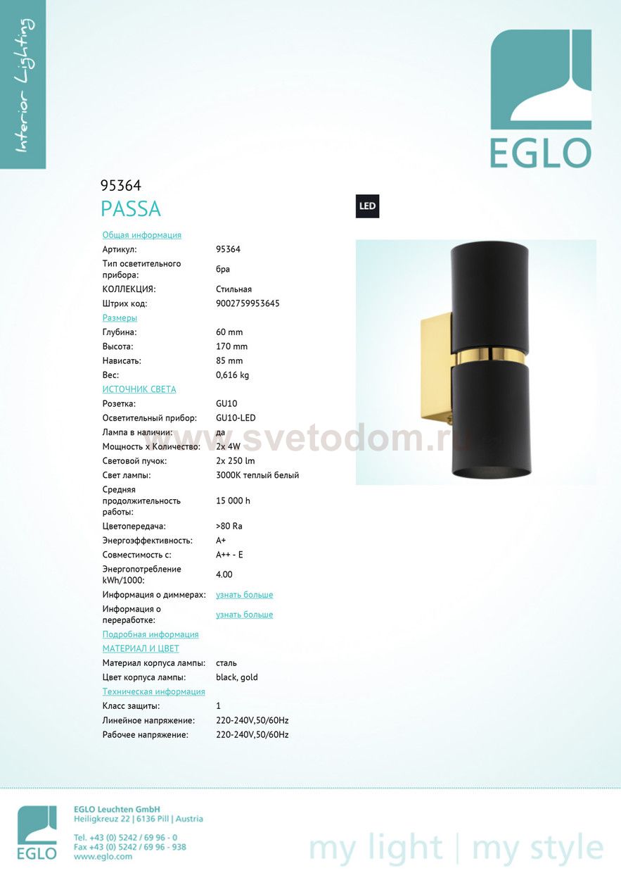Настенно-потолочный светильник Eglo 95364 PASSA