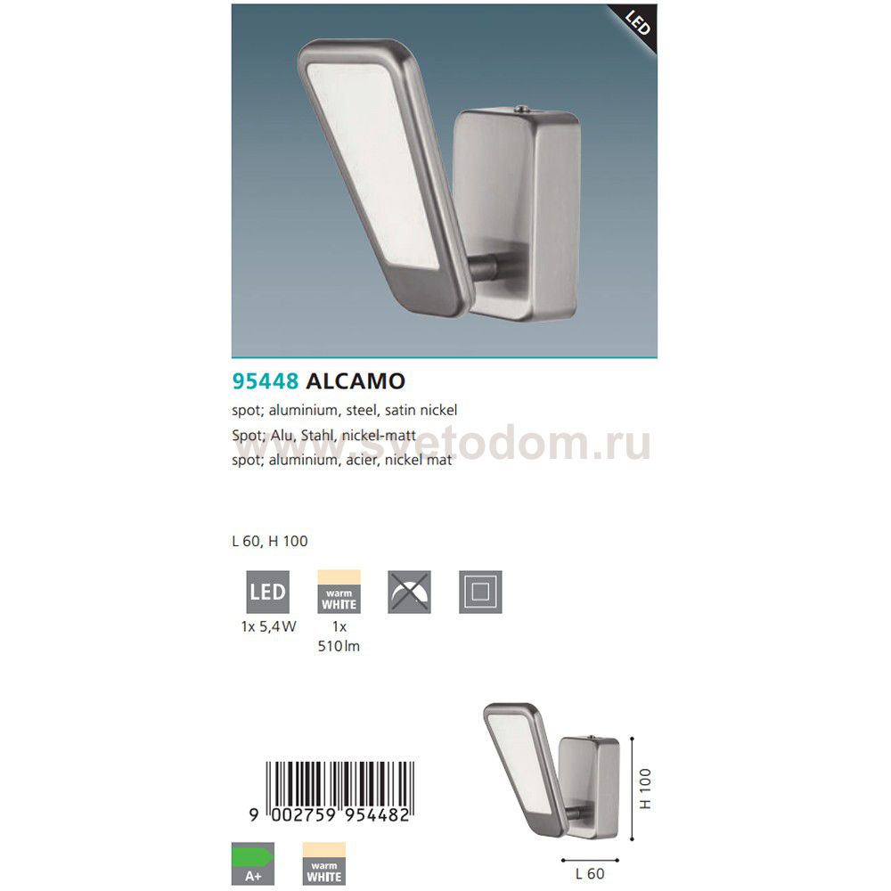 Светодиодный cпот ALCAMO, 1х5,4W(LED), L60, H100, алюминий, сталь, никель матовый применяется преимущественно в домашнем освещении с использованием стандартных выключателей и переключателей для сетей 220V.