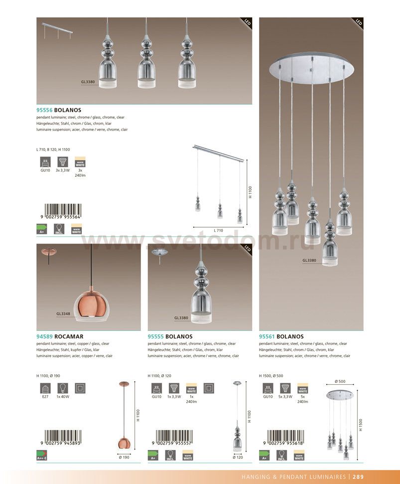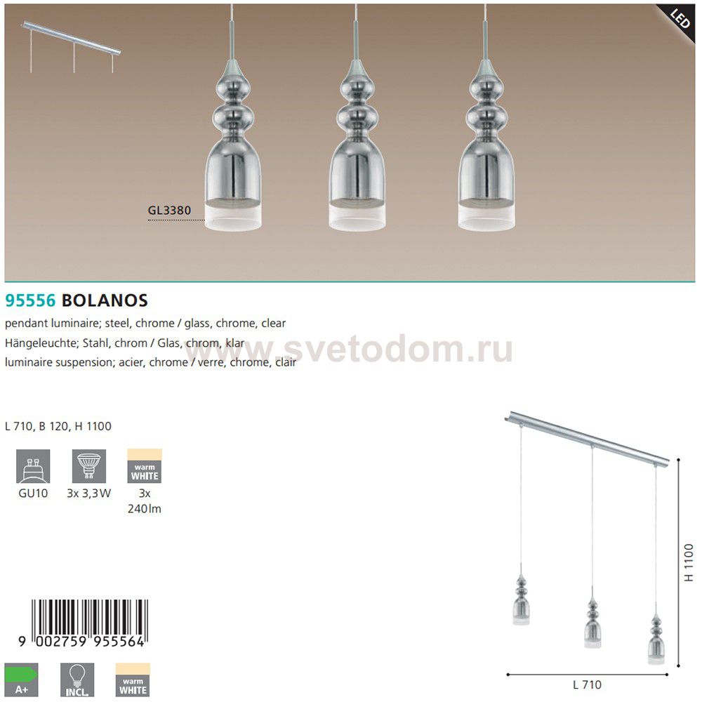 Светодиодный подвес BOLANOS, 3х3,3W(LED), L710, сталь, хром/стекло, хром, прозрачный применяется преимущественно в домашнем освещении с использованием стандартных выключателей и переключателей для сетей 220V.
