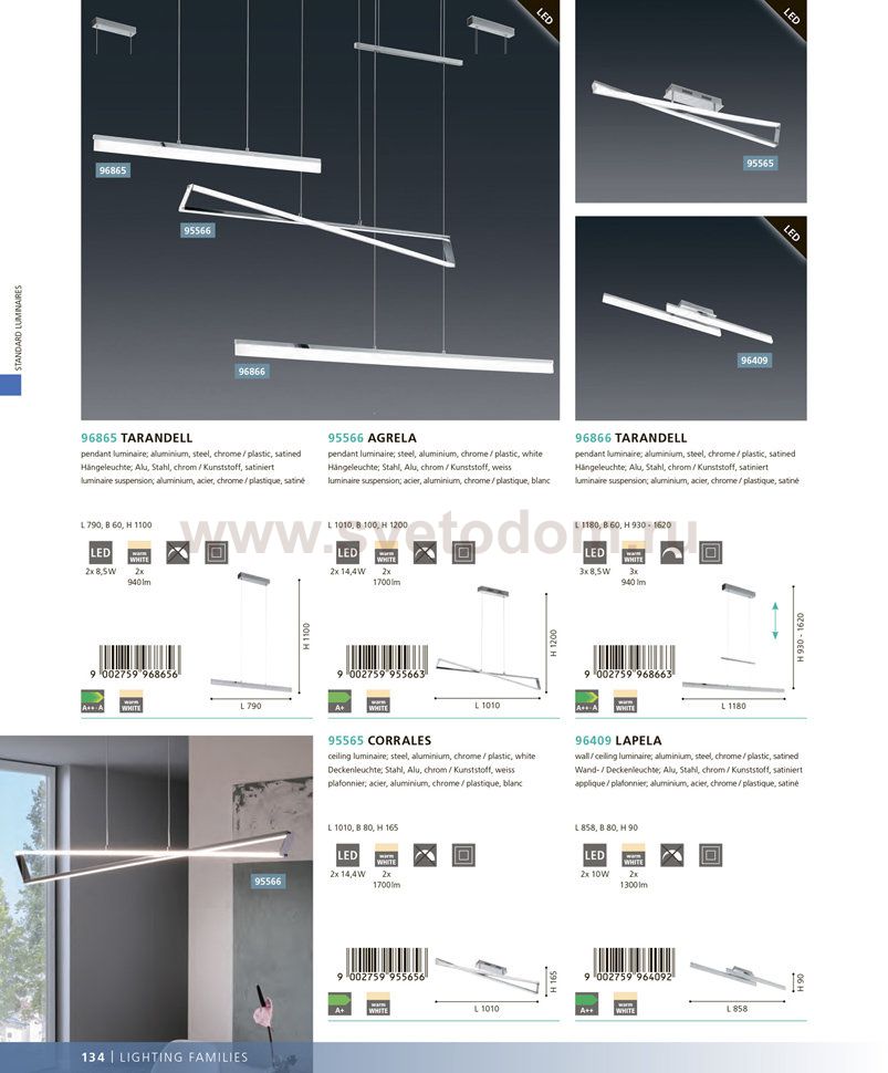 Светодиодный подвес AGRELA, 30W(LED), L1110, H1200, сталь, алюминий, хром/пластик, белый применяется преимущественно в домашнем освещении с использованием стандартных выключателей и переключателей для сетей 220V.