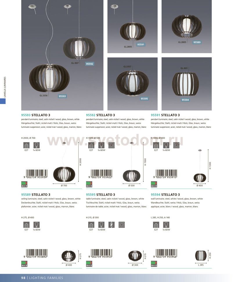 Наст. лампа STELLATO 3, 1х60W(E27), ?300, H215, сталь, белый/дерево, стекло, коричневый, белый применяется преимущественно в домашнем освещении с использованием стандартных выключателей и переключателей для сетей 220V.