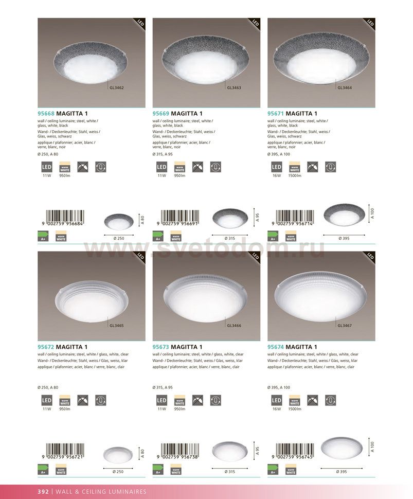 Светодиодный настенно-потолочный светильник MAGITTA 1, 11W(LED), ?250, сталь, белый/стекло, белый, черный применяется преимущественно в домашнем освещении с использованием стандартных выключателей и переключателей для сетей 220V.