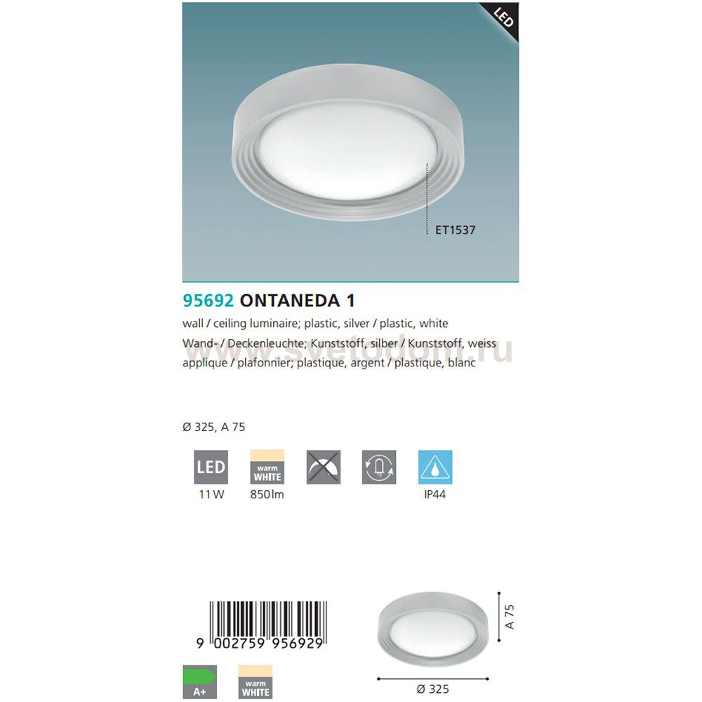 Светодиодный настенно-потолочный светильник ONTANEDA 1, 11W(LED), ?325, IP44, пластик, серебряный/пластик, белый применяется преимущественно в домашнем освещении с использованием стандартных выключателей и переключателей для сетей 220V.