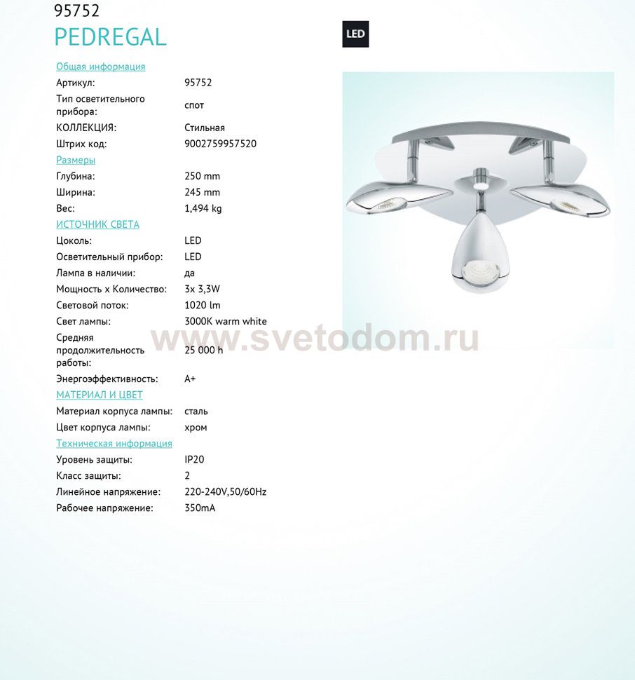 Светодиодный спот PEDREGAL, 3x3,3W(LED), L250, H245, сталь, хром применяется преимущественно в домашнем освещении с использованием стандартных выключателей и переключателей для сетей 220V.