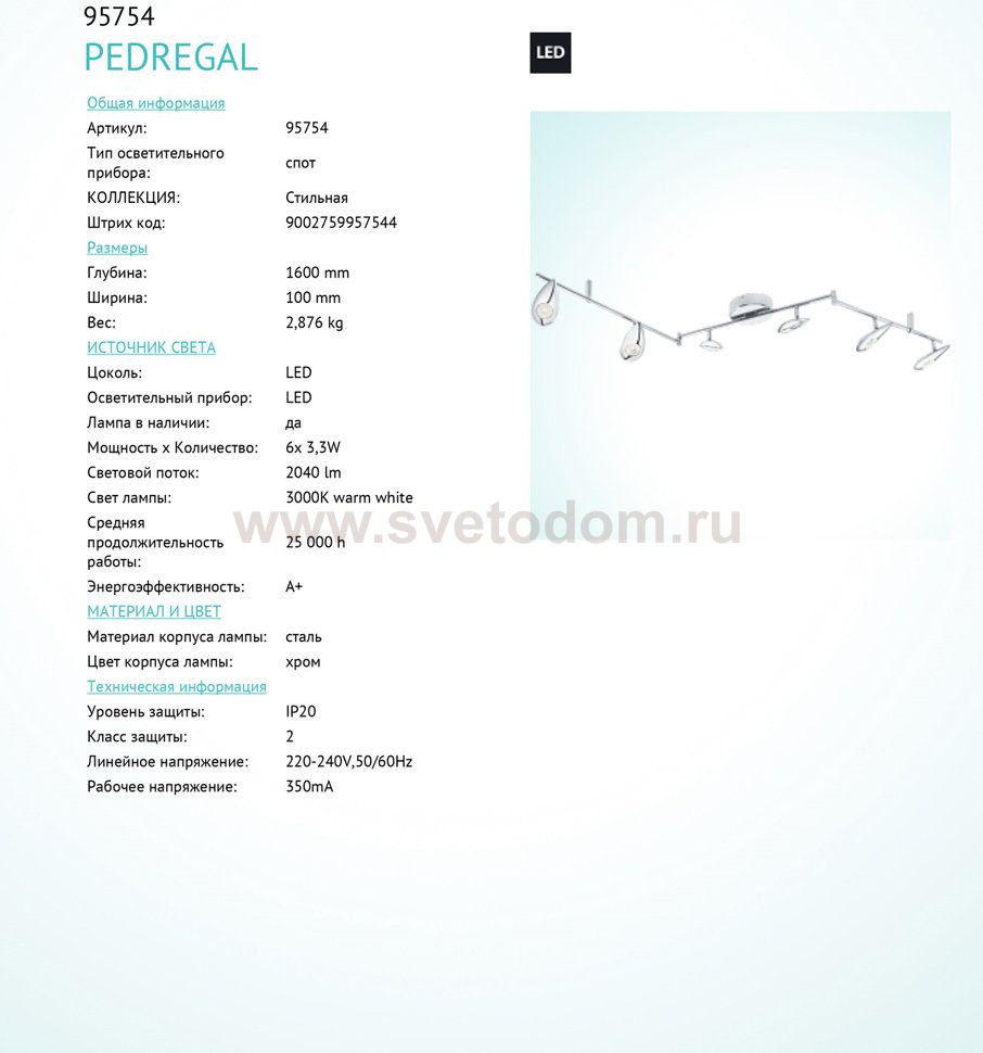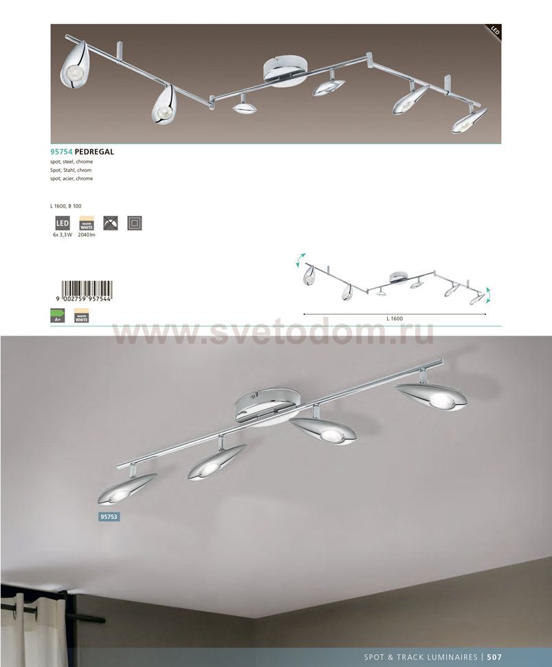 Светодиодный спот PEDREGAL, 6x3,3W(LED), L1600, сталь, хром применяется преимущественно в домашнем освещении с использованием стандартных выключателей и переключателей для сетей 220V.