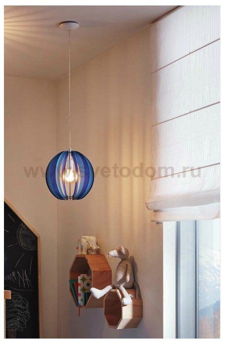 Подвес в детскую комнату FABELLA, 1х60W(E27), ?300, H255, сталь, синий/дерево, синий применяется преимущественно в домашнем освещении с использованием стандартных выключателей и переключателей для сетей 220V.