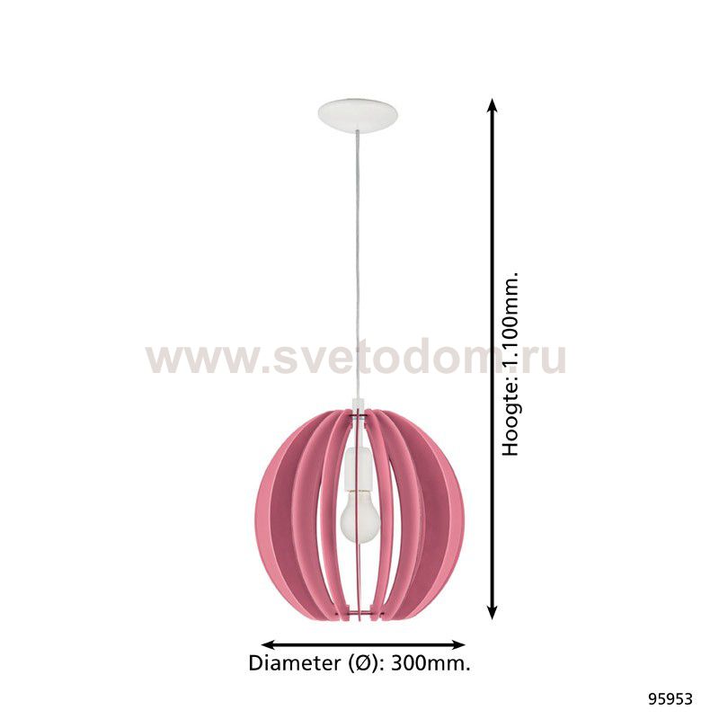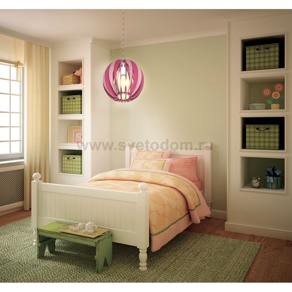 Подвес в детскую комнату FABELLA, 1х60W(E27), ?300, H255, сталь, розовый/дерево, розовый применяется преимущественно в домашнем освещении с использованием стандартных выключателей и переключателей для сетей 220V.