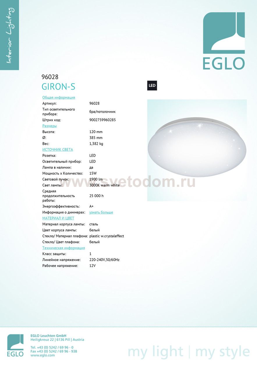 48 Отзывы Светодиодный светильник Eglo 96027 GIRON-S 300ммПока нет отзывов об этом товаре, напишите и он обязательно появится после модерации! Оставить свой отзывПохожие товары Другие товары магазина Фото