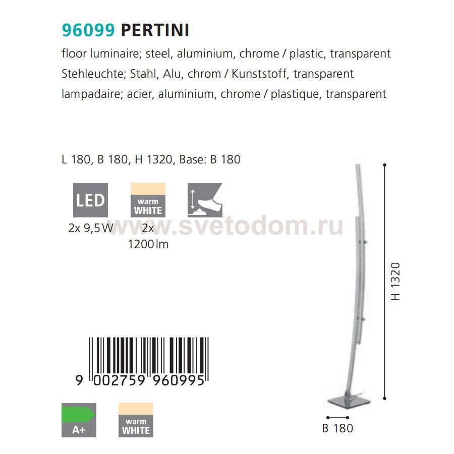 Светодиодный торшер PERTINI с ножн. выкл., 2х9,5W(LED), L180, H1320, сталь, алюм., хром/пластик, прозрачный применяется преимущественно в домашнем освещении с использованием стандартных выключателей и переключателей для сетей 220V.