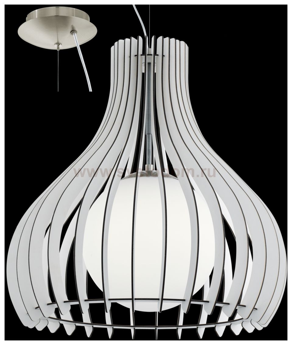 Подвес TINDORI, 1х60W(E27), ?600, H2000, сталь, никель мат./дерево, стекло, белый применяется преимущественно в домашнем освещении с использованием стандартных выключателей и переключателей для сетей 220V.