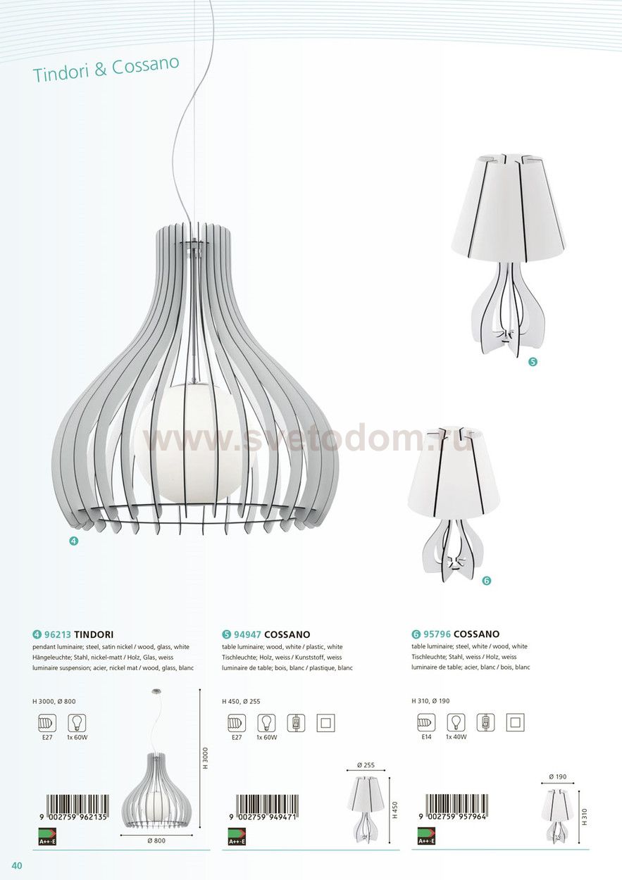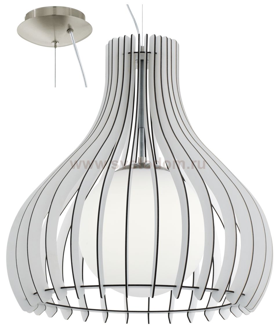 Подвес TINDORI, 1х60W(E27), ?800, H3000, сталь, никель мат./дерево, стекло, белый применяется преимущественно в домашнем освещении с использованием стандартных выключателей и переключателей для сетей 220V.