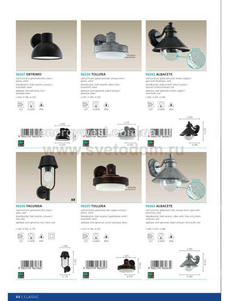 Обеспечение качественного уличного освещения – важная задача для владельцев коттеджей. Компания «Светодом» предлагает современные светильники, которые порадуют Вас отличным исполнением. В нашем каталоге представлена продукция известных производителей, пользующихся популярностью благодаря высокому качеству выпускаемых товаров. Уличный светильник Eglo 96233 не просто обеспечит качественное освещение, но и станет украшением Вашего участка. Модель выполнена из современных материалов и имеет влагозащитный корпус, благодаря которому ей не страшны осадки. Купить уличный светильник Eglo 96233, представленный в нашем каталоге, можно с помощью онлайн-формы для заказа. Чтобы задать имеющиеся вопросы, звоните нам по указанным телефонам.