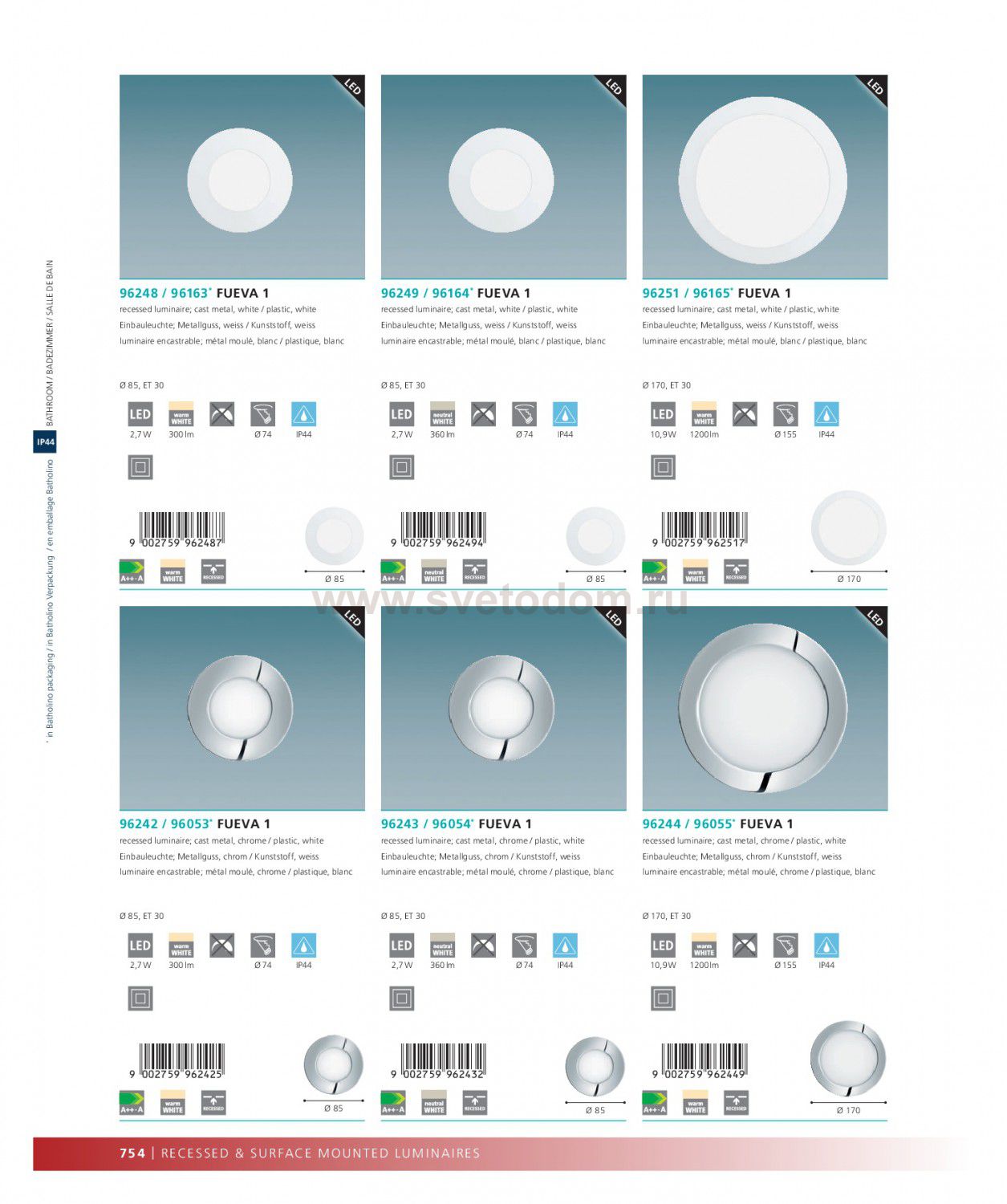 Светодиодная ультратонкая встраиваемая панель FUEVA 1, 10,9W (LED) 3000K, ?170, IP44, хром применяется преимущественно в домашнем освещении с использованием стандартных выключателей и переключателей для сетей 220V.