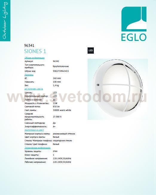 82 Отзывы Уличный светодиодный светильник настенно-потолочный Eglo 96341 SIONES 1Пока нет отзывов об этом товаре, напишите и он обязательно появится после модерации! Оставить свой отзывПохожие товары Другие товары магазина Фото
