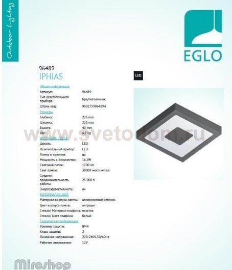 ET1983 Отзывы Уличный светодиодный настенный светильник Eglo 96489 IPHIASПока нет отзывов об этом товаре, напишите и он обязательно появится после модерации! Оставить свой отзывПохожие товары Другие товары магазина Фото