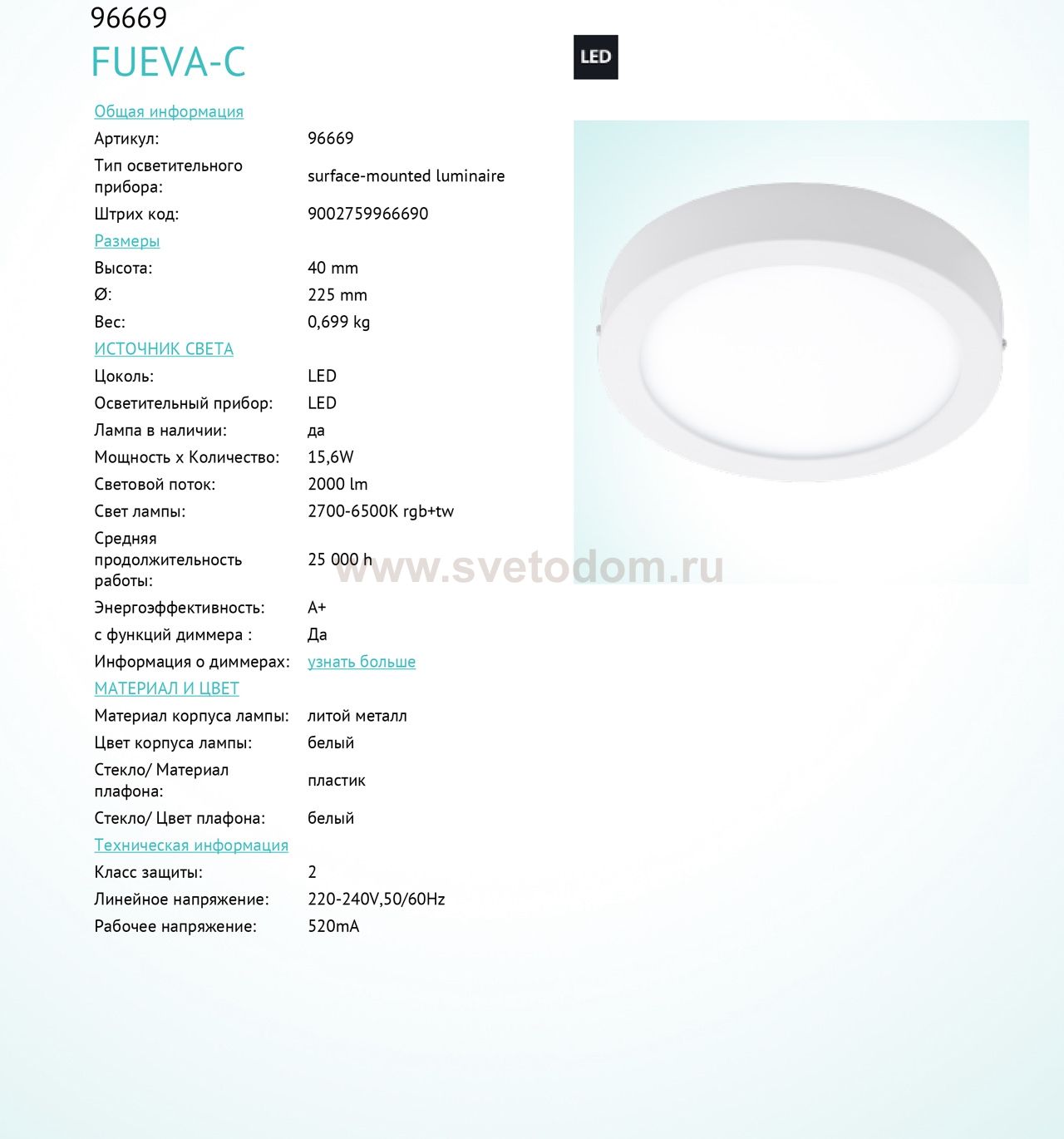 Светодиодная ультратонкая потолочная панель Eglo 96669 FUEVA-C сделает Ваш интерьер современным, стильным и запоминающимся! Наиболее функционально и эстетически привлекательно модель будет смотреться в гостиной, зале, холле или другой комнате. А в комплекте с люстрой и торшером из этой же коллекции, сделает помещение по-дизайнерски профессиональным и законченным.