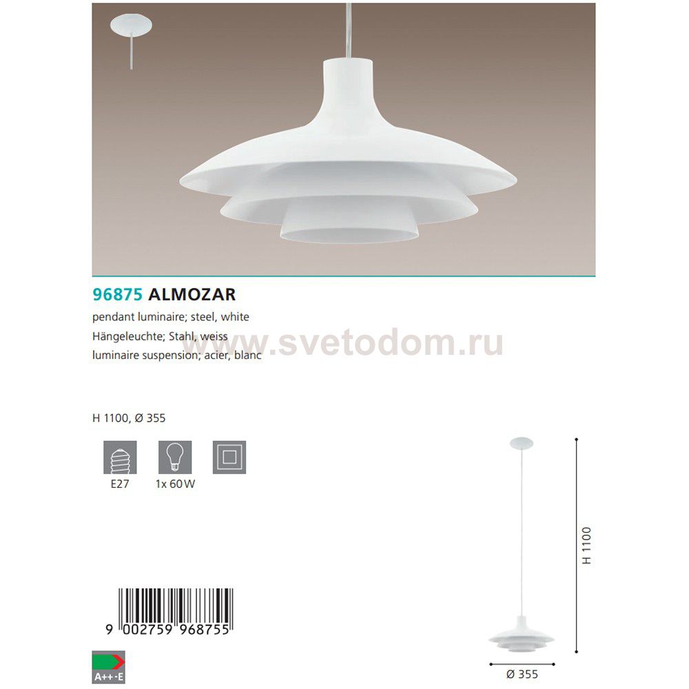 Подвесной светильник Eglo 96875 ALMOZAR отличается регулировкой по высоте и сделает Ваш интерьер современным, стильным и запоминающимся! Наиболее функционально и эстетически привлекательно модель будет смотреться в гостиной, зале, холле или другой комнате. А в комплекте с люстрой, бра или торшером из этой же коллекции сделает ремонт по-дизайнерски профессиональным и законченным.
