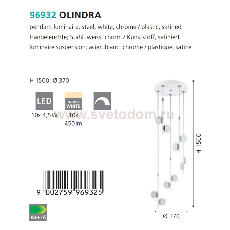 Светодиодный подвесной светильник Eglo 96932 OLINDRA сделает Ваш интерьер современным, стильным и запоминающимся! Наиболее функционально и эстетически привлекательно модель будет смотреться в гостиной, зале, холле или другой комнате. А в комплекте с настенными бра и торшером из этой же коллекции, сделает интерьер по-дизайнерски профессиональным и законченным.