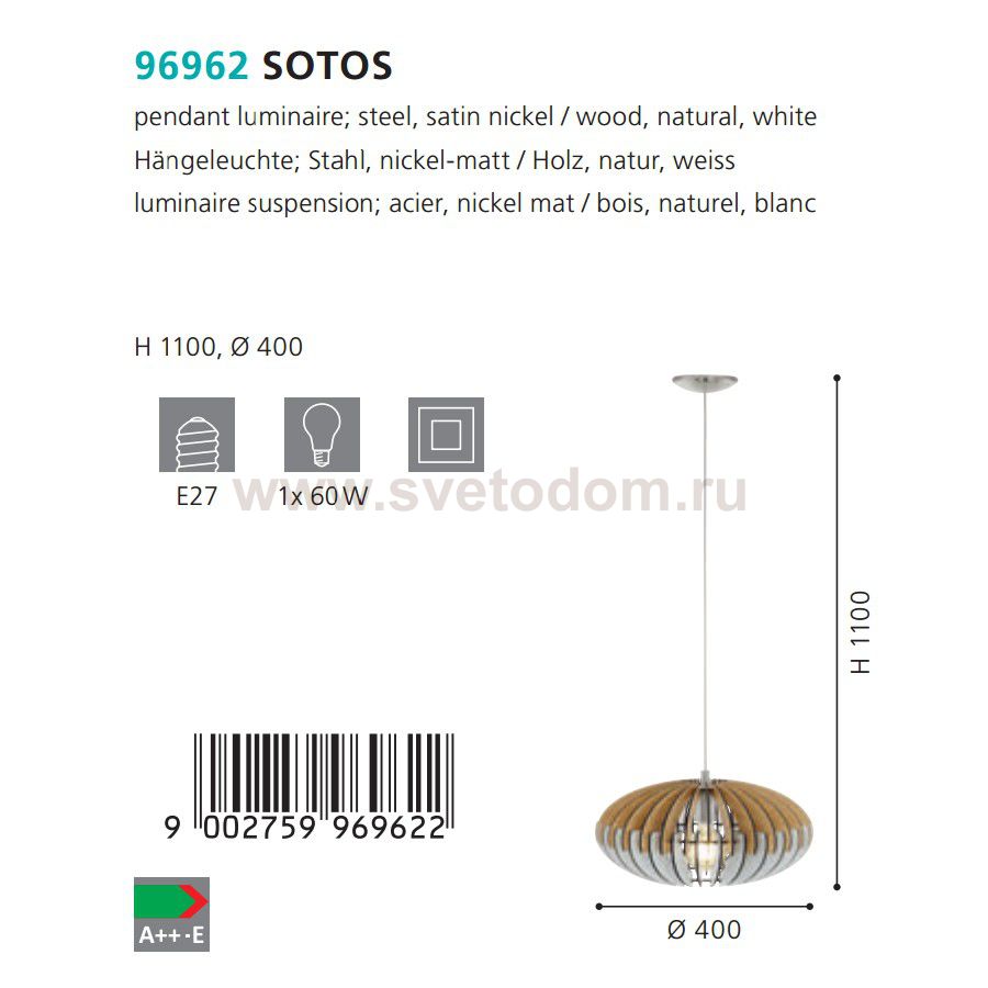 Подвесной светильник Eglo 96962 SOTOS отличается регулировкой по высоте и сделает Ваш интерьер современным, стильным и запоминающимся! Наиболее функционально и эстетически привлекательно модель будет смотреться в гостиной, зале, холле или другой комнате. А в комплекте с люстрой, бра или торшером из этой же коллекции сделает ремонт по-дизайнерски профессиональным и законченным.
