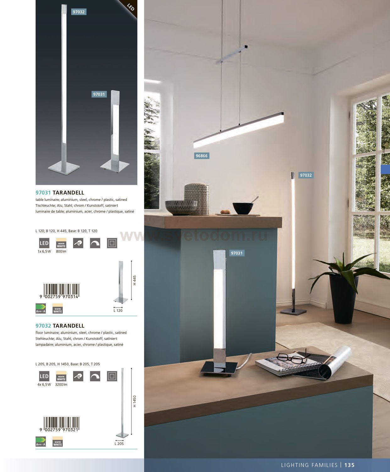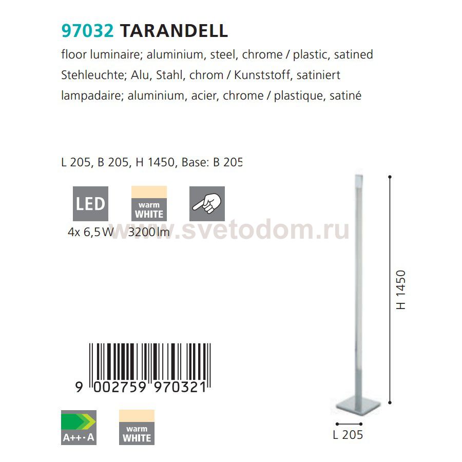 Торшер Eglo 97032 TARANDELL – это не просто функциональный предмет интерьера, позволяющий обеспечить дополнительное освещение, но и оригинальный декоративный элемент. Такой напольный светильник можно использовать для интерьера не только гостиной, но и спальни или кабинета. А в комплекте с люстрой, бра или настольной лампой из этой же коллекции сделает интерьер по-дизайнерски профессиональным и законченным.