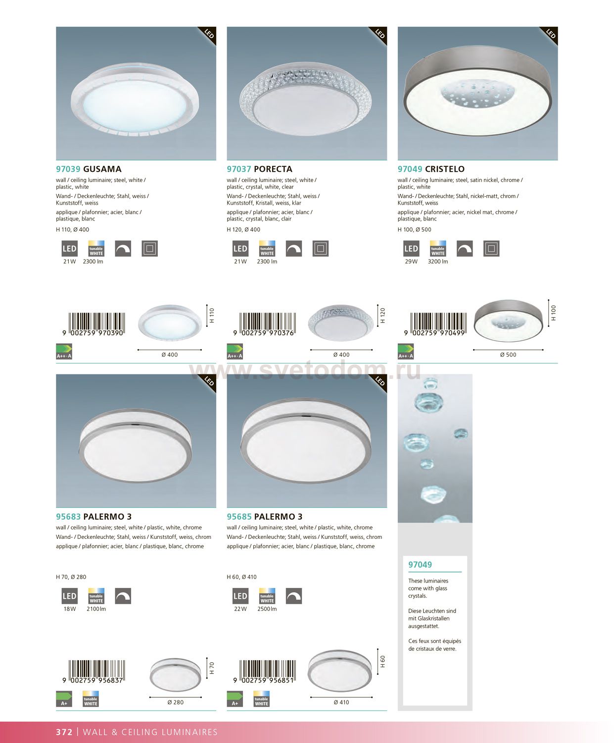 Светильник настенно-потолочный Eglo 97049 CRISTELO сделает Ваш интерьер современным, стильным и запоминающимся! Наиболее функционально и эстетически привлекательно модель будет смотреться в гостиной, зале, холле или другой комнате. А в комплекте с люстрой и торшером из этой же коллекции, сделает помещение по-дизайнерски профессиональным и законченным.