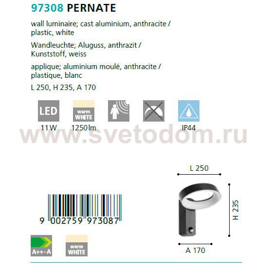 Уличный настенный светильник светодиодный PERNATE Комментарий