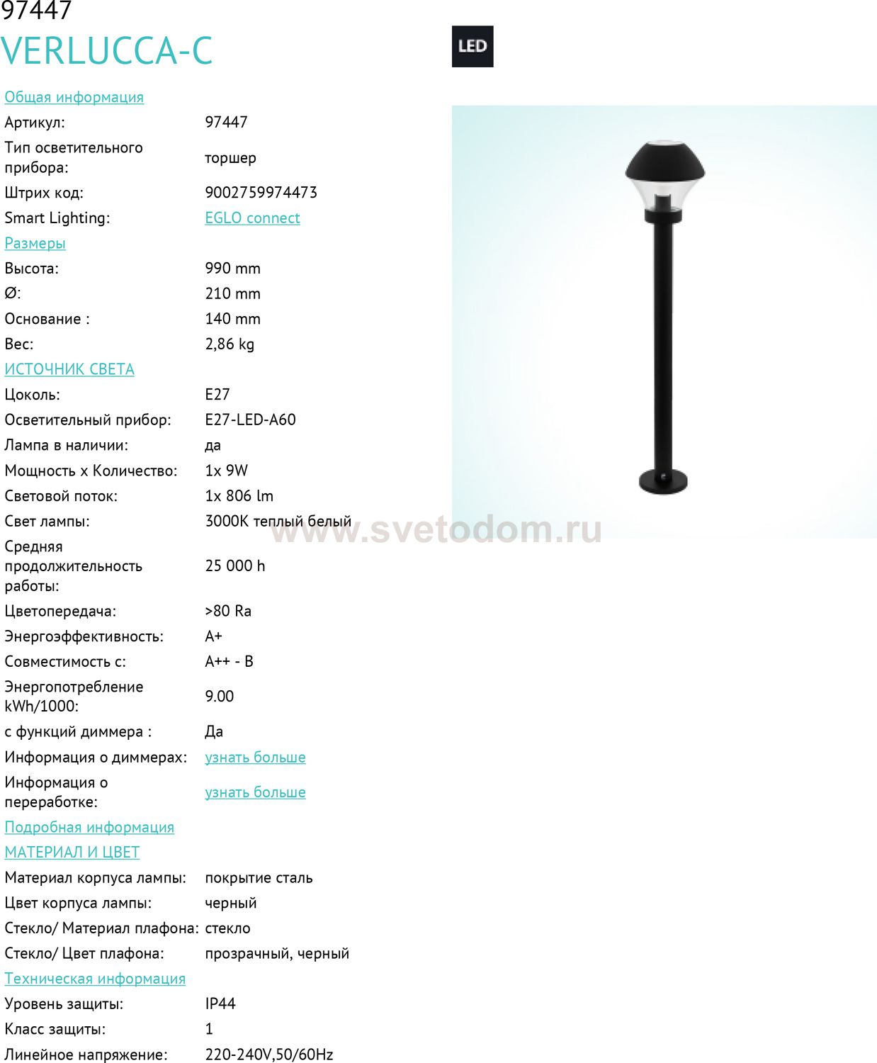 Уличный фонарь светодиодный VERLUCCA-C Комментарий