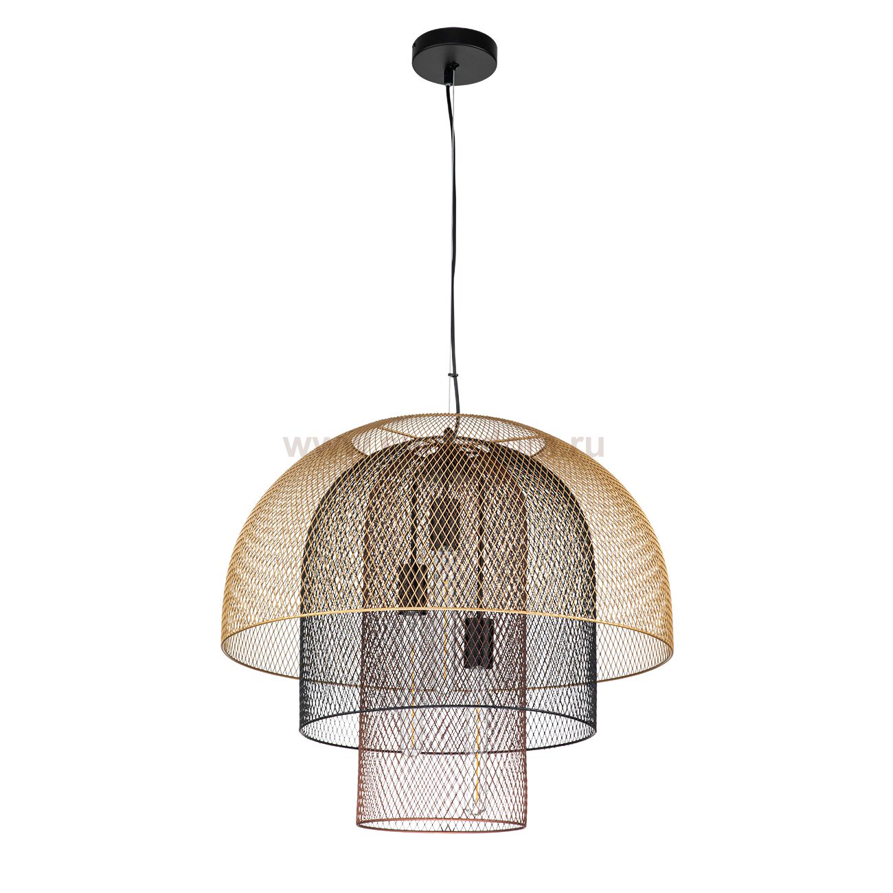 Подвесной светильник FORZA максимально воплотил в себе брутальный характер стиля лофт. Оттенки благородных металлов наградили его истинным превосходством. Каскад структурных абажуров из металлической сетки олицетворяют три главных качества настоящего воина: твердость ума, сила духа, стальной характер. Данная модель принесет в ваше пространство дополнительную энергию и силу. Размер 600*600*2070 Мощность E27 40W*3 Цвет ЗОЛОТО/ЧЕРНЫЙ/БРОНЗА Материал МЕТАЛЛ