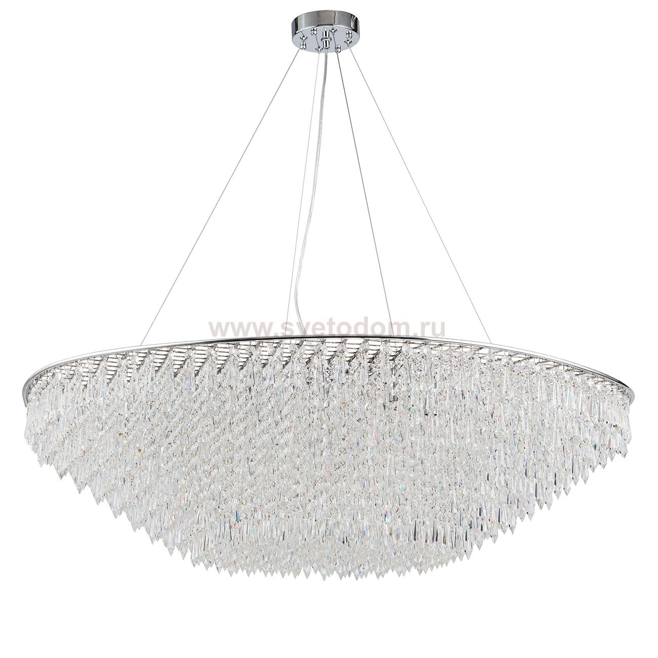 В каждой композиции хрустальные светильники играют свою роль. Неповторимые светильники серии INTRIGO созданы, чтобы вызывать эмоции, становясь не только элементом интерьера, но и частью вашей жизни. Это современное решение для тех, кто хочет придать интерьеру классический стиль и индивидуальность. Светильники интригуют не только своими размерами, но и необычной конструкцией. Сотни хрустальных подвесов расположились по кругу на разной высоте. Рассматривая их, можно, поистине, испытать бурю эмоций. Серия INTRIGO украсит ваш интерьер, придав ему романтики и шика. Размер 1010*1010*295/1090 Мощность G9 16xMAX 40W Цвет ХРОМ/ПРОЗРАЧНЫЙ Материал МЕТАЛЛ/ХРУСТАЛЬ