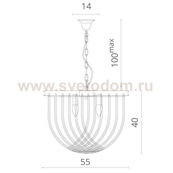 Характеризует подвесную систему светильника. Данную длину возможно изменять: дополнять или сокращать в пределах указанных данных.