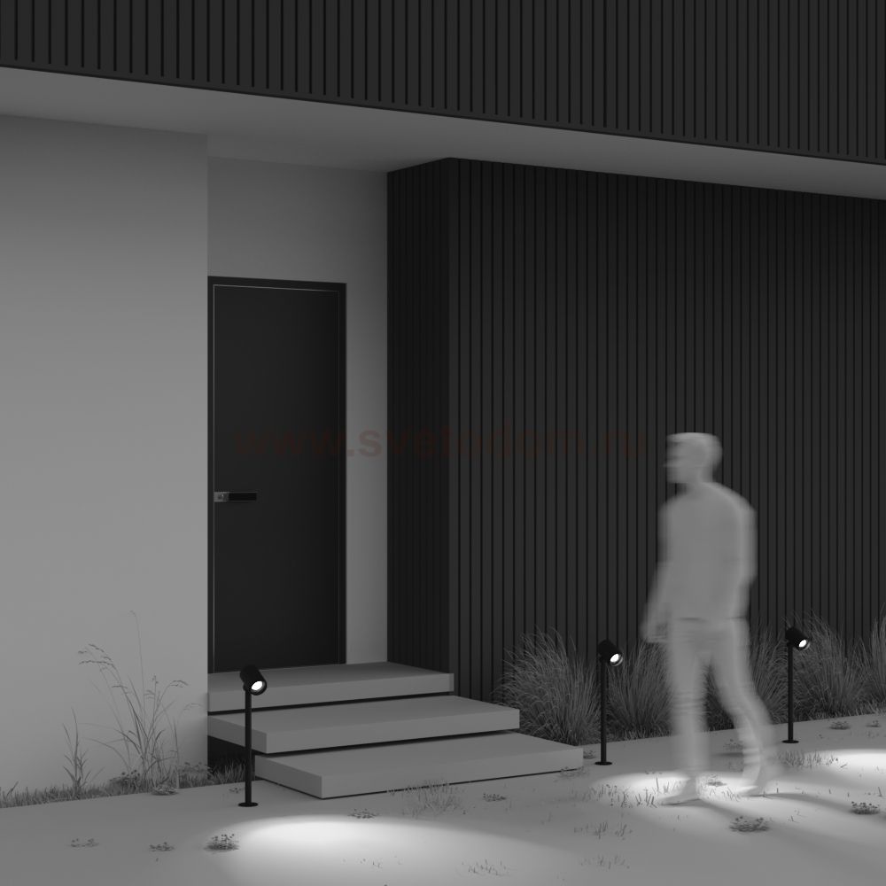 Материал арматуры - алюминий, цвет - черный. LED-источник света с цветовой температурой 3000К. Мощность 12Вт. Повышенная степень защиты от пыли и влаги IP65. Два размера. Поворотный механизм плафонов для регулировки направления светового потока.