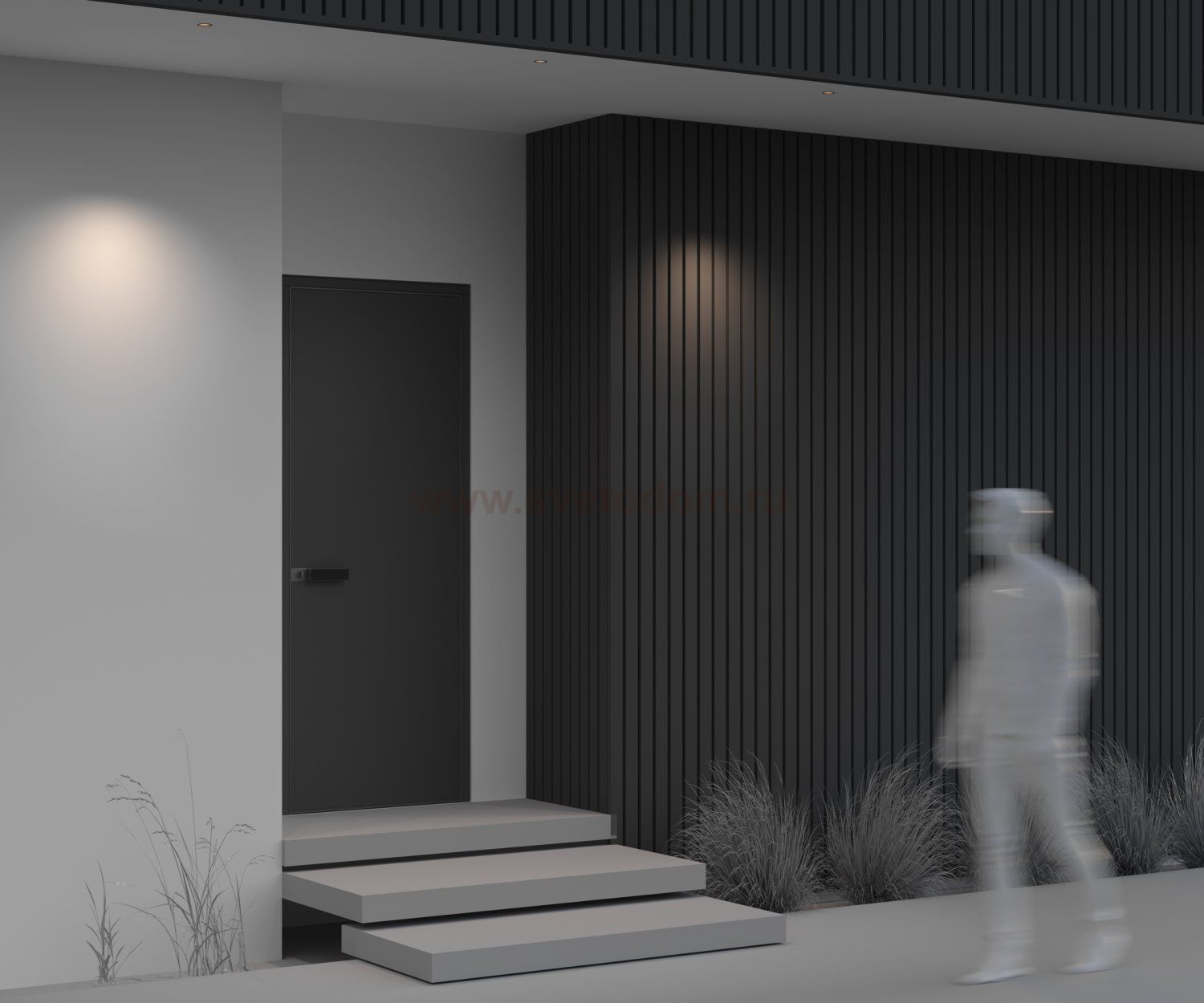 Материал арматуры - алюминий, цвет - черный и белый. Встраиваемый светильник, LED-источник света, цветовая температура 3000К, два размера, два цвета и две мощности (5Вт и 10Вт), высокая степень защиты от пыли и влаги IP65, высокий индекс цветопередачи >90. Скрытый монтаж.
