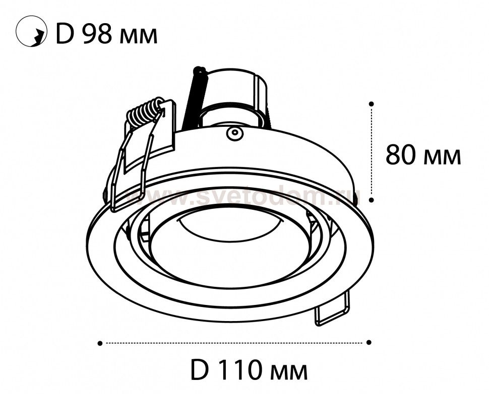 Поворотный встраиваемый светильник с утопленным металлическим корпусом. Комплектуется стандартным патроном GU10, что позволяет использовать светодиодные и галогеновые лампы. Подходит для любого типа интерьера.