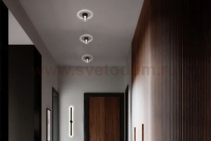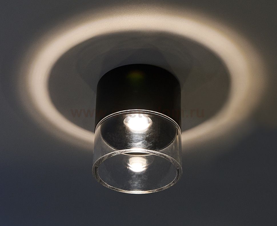 Потолочные светодиодные светильники из металла и поликарбоната. Представлены в черном и белом цвете. На потолке создают декоративный световой ореол, в комплекте светодиодный модуль с цветовой температурой 3000K.