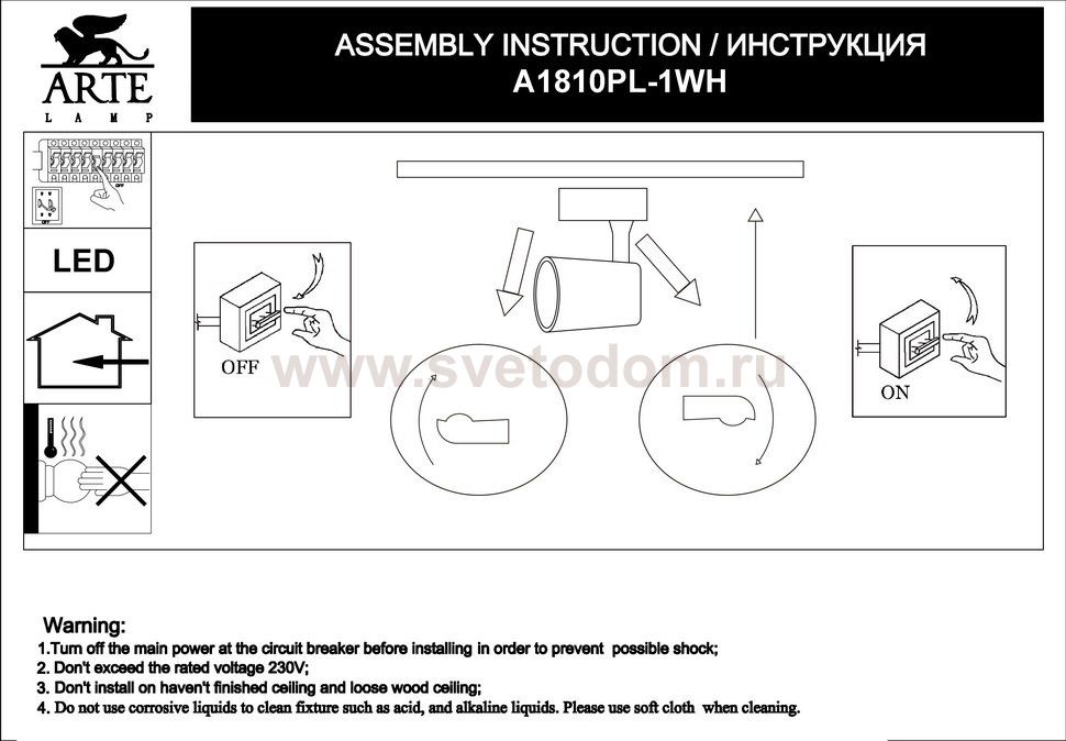 Светильник потолочный Arte lamp A1810PL-1WH отличается поворотной способностью регулировки светового потока и сделает Ваше помещение современным, стильным и запоминающимся! Наиболее функционально и эстетически привлекательно модель будет смотреться в гостиной, зале, холле или другой комнате. А в комплекте с люстрой, бра или торшером из этой же коллекции сделает интерьер по-дизайнерски профессиональным и законченным.
