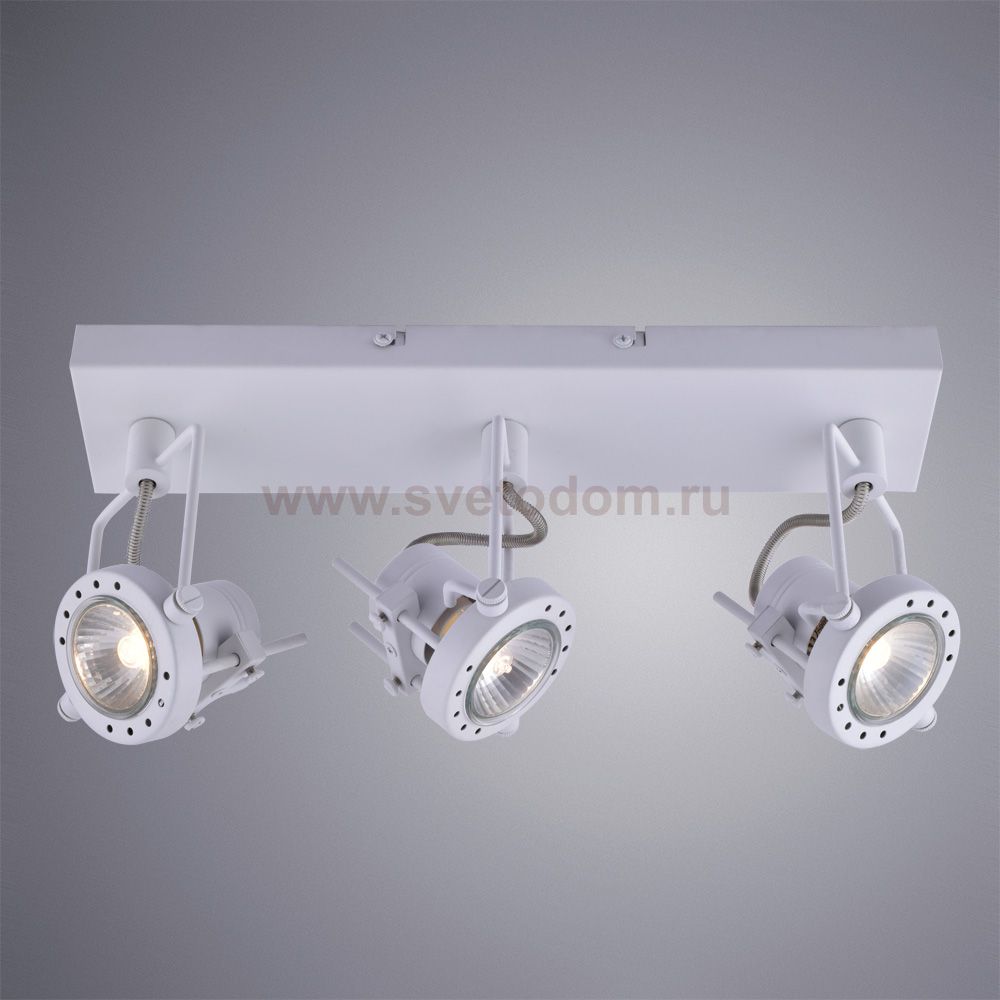 Светильник потолочный Arte lamp A4300PL-3WH Costruttore отличается поворотной способностью регулировки светового потока и сделает Ваше помещение современным, стильным и запоминающимся! Наиболее функционально и эстетически привлекательно модель будет смотреться в гостиной, зале, холле или другой комнате. А в комплекте с люстрой, бра или торшером из этой же коллекции сделает интерьер по-дизайнерски профессиональным и законченным.