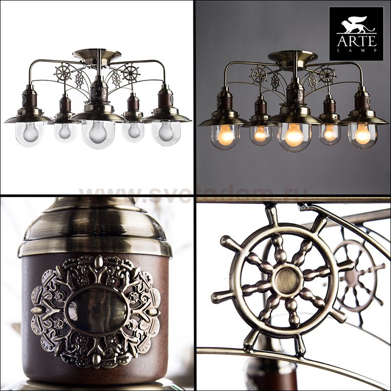 Компания «Светодом» предлагает широкий ассортимент люстр от известных производителей. Представленные в нашем каталоге товары выполнены из современных материалов и обладают отличным качеством. Благодаря широкому ассортименту Вы сможете найти у нас люстру под любой интерьер. Мы предлагаем как классические варианты, так и современные модели, отличающиеся лаконичностью и простотой форм. Стильная люстра украшенная маленькими штурвальчиками Arte lamp A4524PL-5AB станет украшением любого дома. Эта модель от известного производителя не оставит равнодушным ценителей красивых и оригинальных предметов интерьера. Люстра Arte lamp A4524PL-5AB обеспечит равномерное распределение света по всей комнате. При выборе обратите внимание на характеристики, позволяющие приобрести наиболее подходящую модель. Купить понравившуюся люстру по доступной цене Вы можете в интернет-магазине «Светодом».