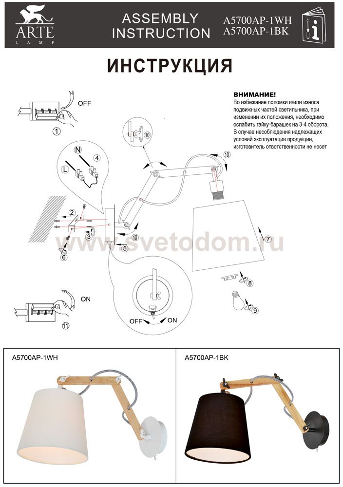 A5700AP-1WH СВЕТИЛЬНИК НАСТЕННЫЙ Комментарий