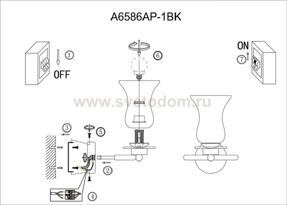 Светильник настенный бра Arte lamp A6586AP-1BK MALIA