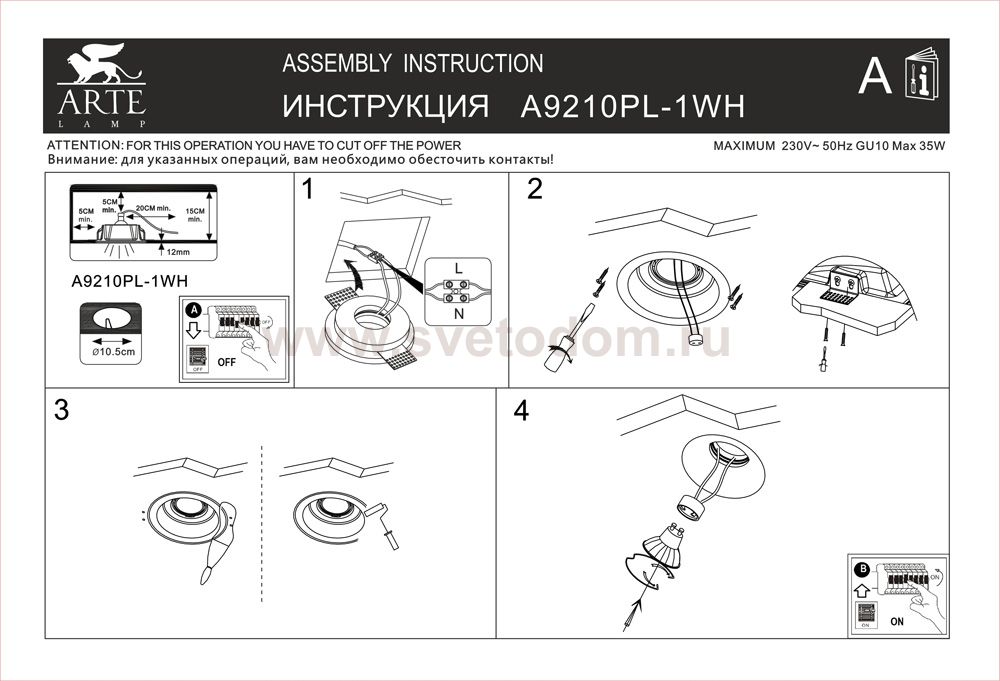 A9210PL-1WH СВЕТИЛЬНИК ПОТОЛОЧНЫЙ Комментарий