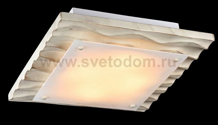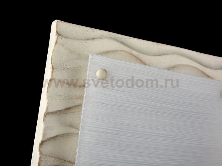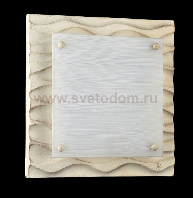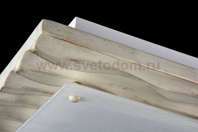 Настенно-потолочный светильник двух цветов: серый антик и кремовое золото. Квадратный каркас, ламинированный под дерево. Матовое стекло.