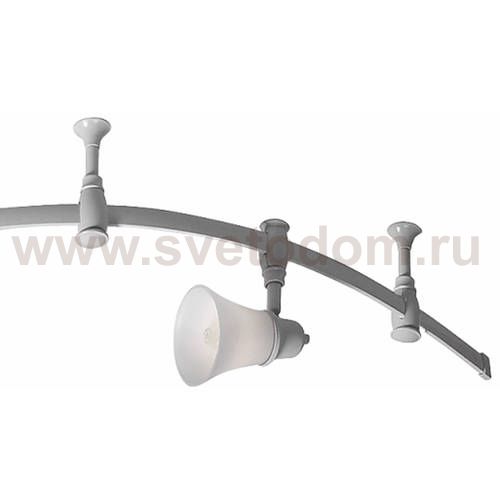Трековая система 220V на гибкой шине длиной 200см, в комплекте 4 стойки крепления шины и 4 головки, размер головки 12см, лампы Е14 или R50, Белое стекло и современный дизайн Штрих-код
