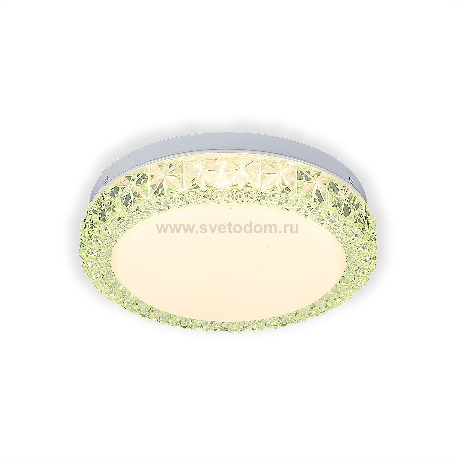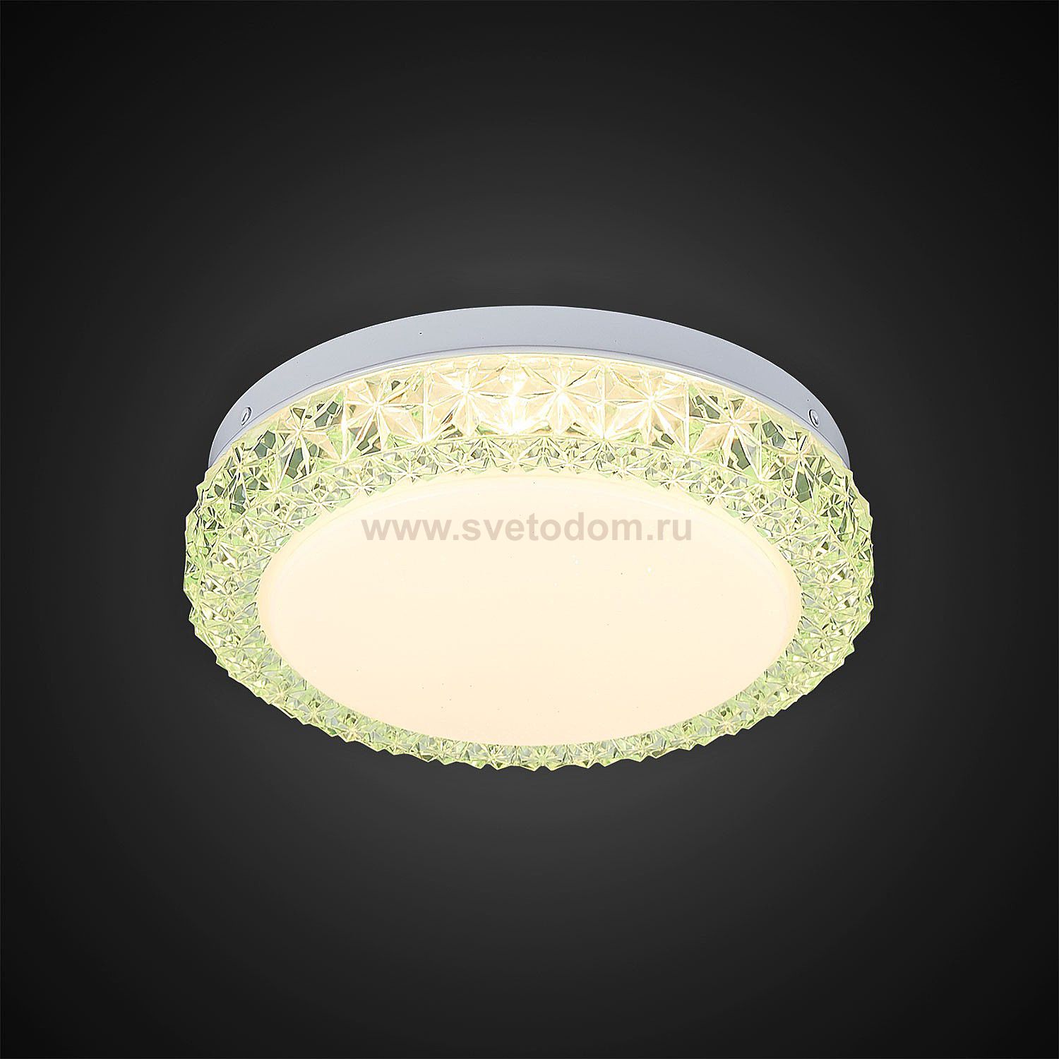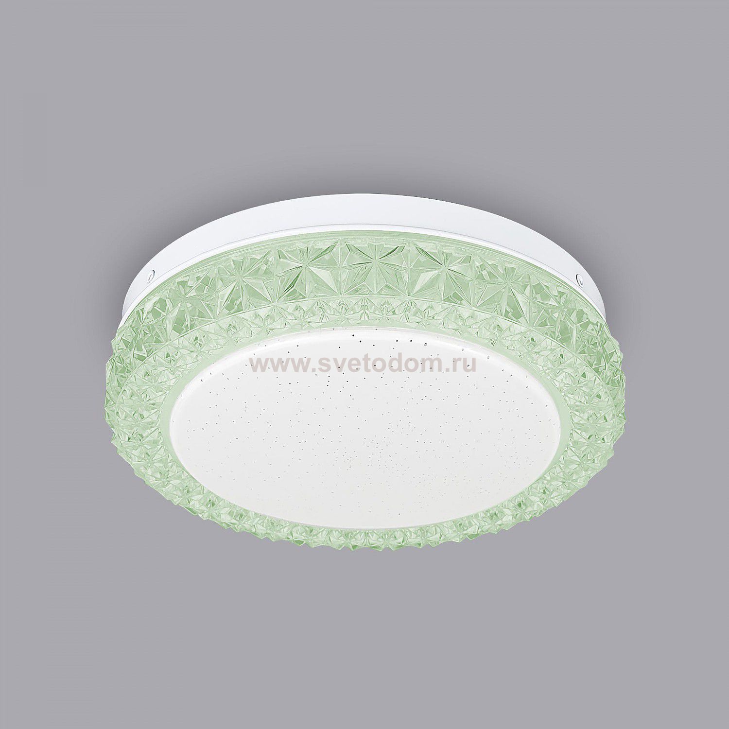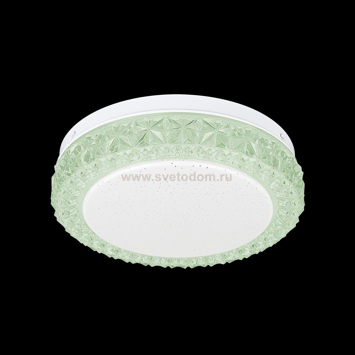 Диаметр 20см, Высота 6,5см, Светодиодный светильник мощностью 12Вт с хрустальным эффектом на зеленом ободе и эффектом "старлайт" на матовом рассеивателе, Уровни мощности 100-50-5% управляются обычным выключателем Комментарий