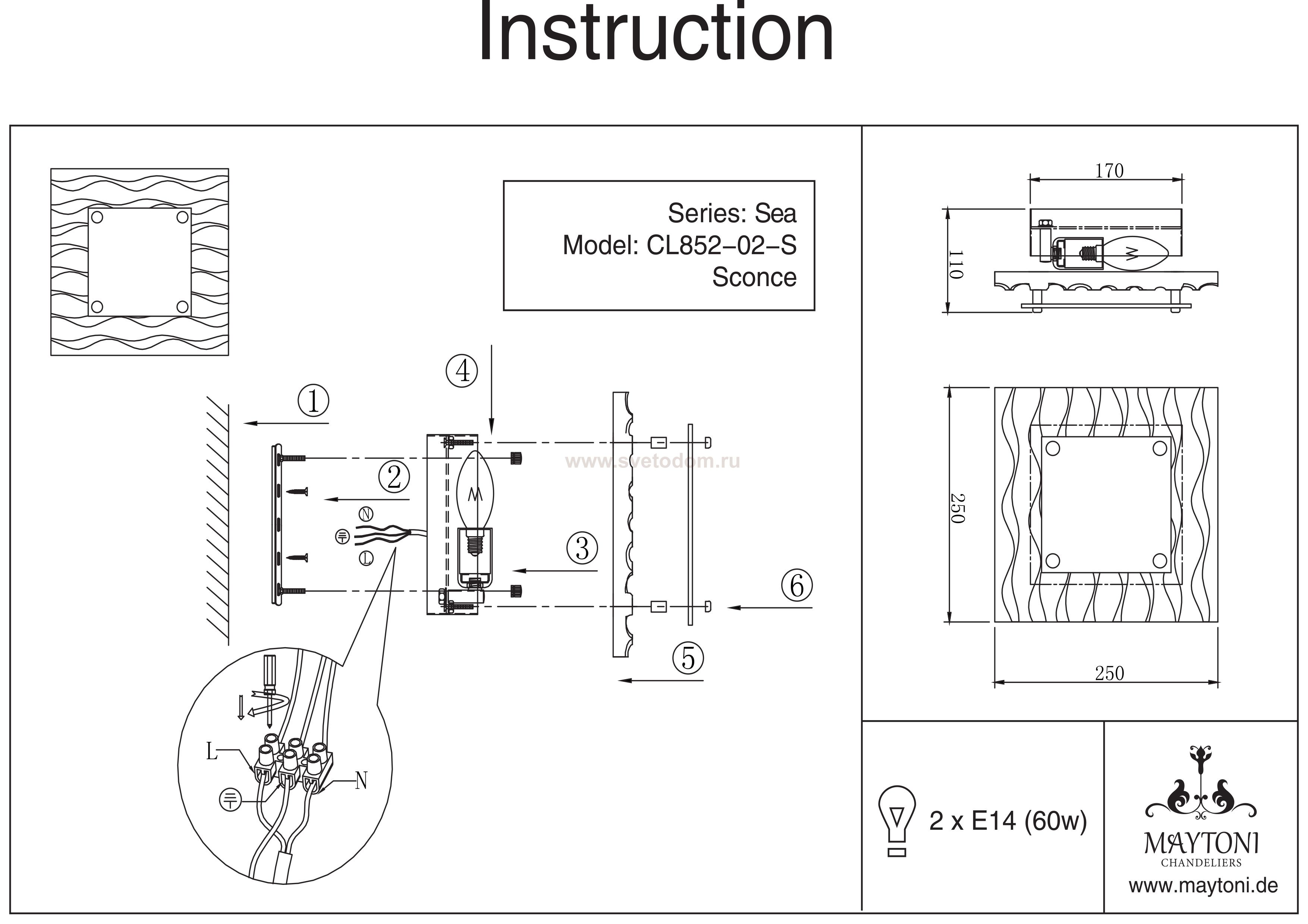 Настенно-потолочные светильники – это универсальные осветительные варианты, которые подходят для вертикального и горизонтального монтажа. В интернет-магазине «Светодом» Вы можете приобрести подобные модели по выгодной стоимости. В нашем каталоге представлены как бюджетные варианты, так и эксклюзивные изделия от производителей, которые уже давно заслужили доверие дизайнеров и простых покупателей. Настенно-потолочный светильник Maytoni CL852-02-S станет прекрасным дополнением к основному освещению. Благодаря качественному исполнению и применению современных технологий при производстве эта модель будет радовать Вас своим привлекательным внешним видом долгое время. Приобрести настенно-потолочный светильник Maytoni CL852-02-S можно, находясь в любой точке России. |