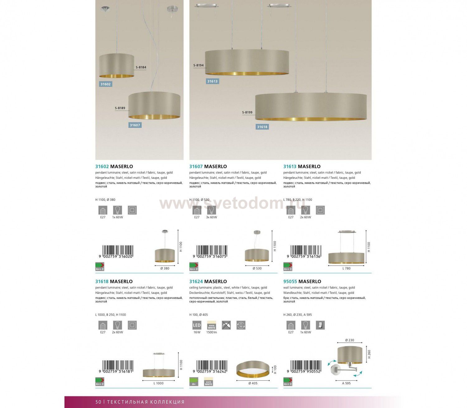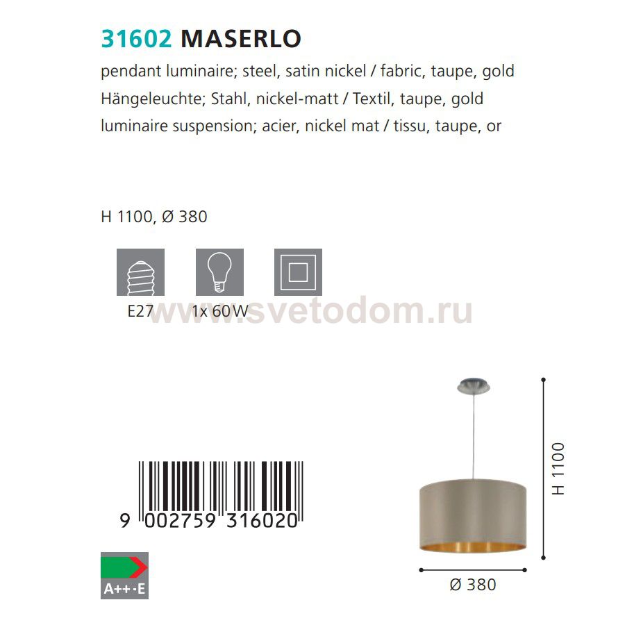 Подвесной потолочный светильник (люстра) MASERLO Комментарий