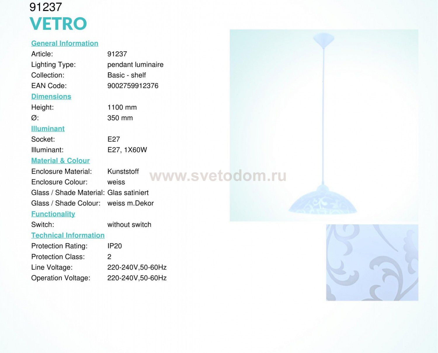 Подвесной светильник – это универсальный вариант, подходящий для любой комнаты. Сегодня производители предлагают огромный выбор таких моделей по самым разным ценам. В каталоге интернет-магазина «Светодом» мы собрали большое количество интересных и оригинальных светильников по выгодной стоимости. Вы можете приобрести их в Москве, Екатеринбурге и любом другом городе России. Подвесной светильник Eglo 91237 сразу же привлечет внимание Ваших гостей благодаря стильному исполнению. Благородный дизайн позволит использовать эту модель практически в любом интерьере. Она обеспечит достаточно света и при этом легко монтируется. Чтобы купить подвесной светильник Eglo 91237, воспользуйтесь формой на нашем сайте или позвоните менеджерам интернет-магазина.