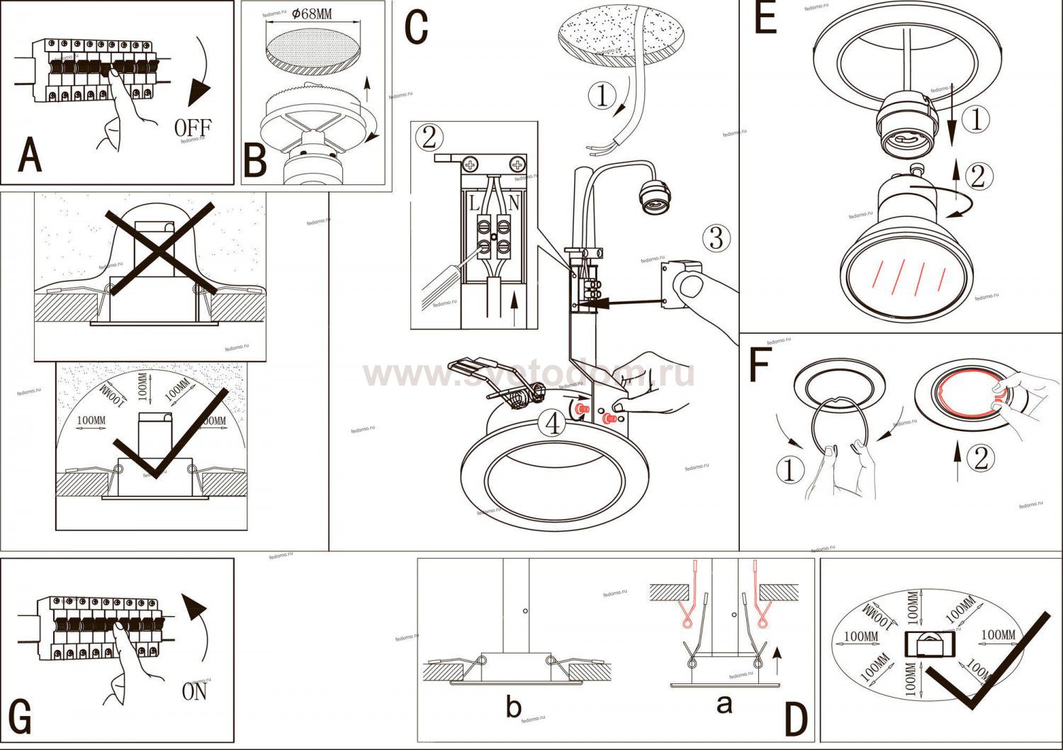Данный размер указывает какое отверстие необходимо сделать для правильного монтажа. Зачастую светильники выбирают после ремонта и сделанных монтажных отверстий, тогда подбор осуществляется строго в размер +/- 2-5мм.